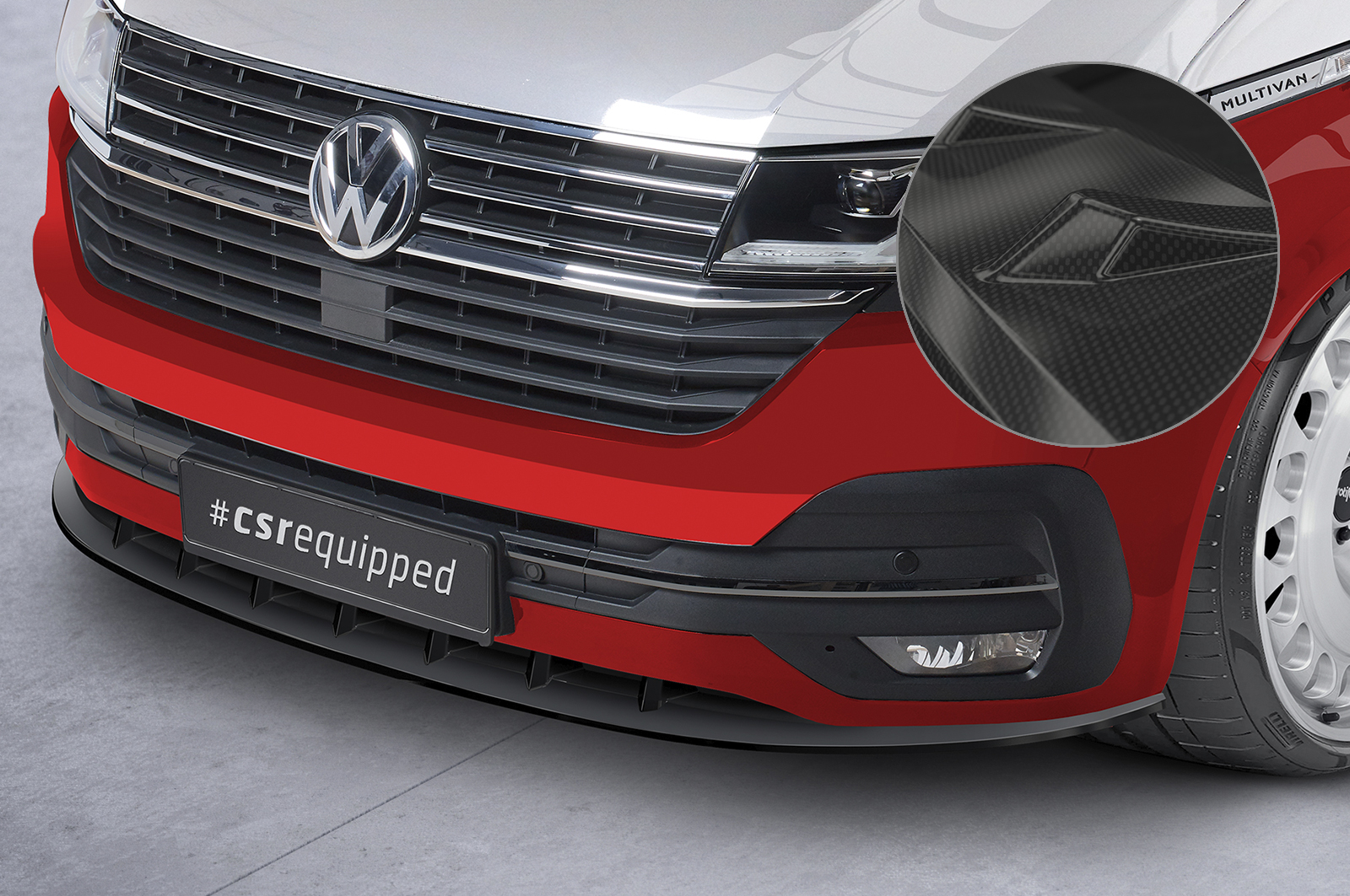 CSR Frontspoiler | Cup-Spoilerlippe mit ABE für VW T6.1 Bus CSL364-C Carbon Look Hochglanz (keine Lackierung erforderlich)