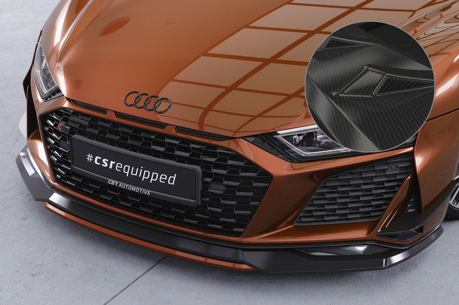 CSR-Automotive Frontspoiler | Cup-Spoilerlippe für Audi R8 (Typ 4S) in Carbon Optik mit ABE (Eintragungsfrei!)- Cupspoilerlippe passend für Audi R8 (Typ 4S) Baujahr 03/2019-