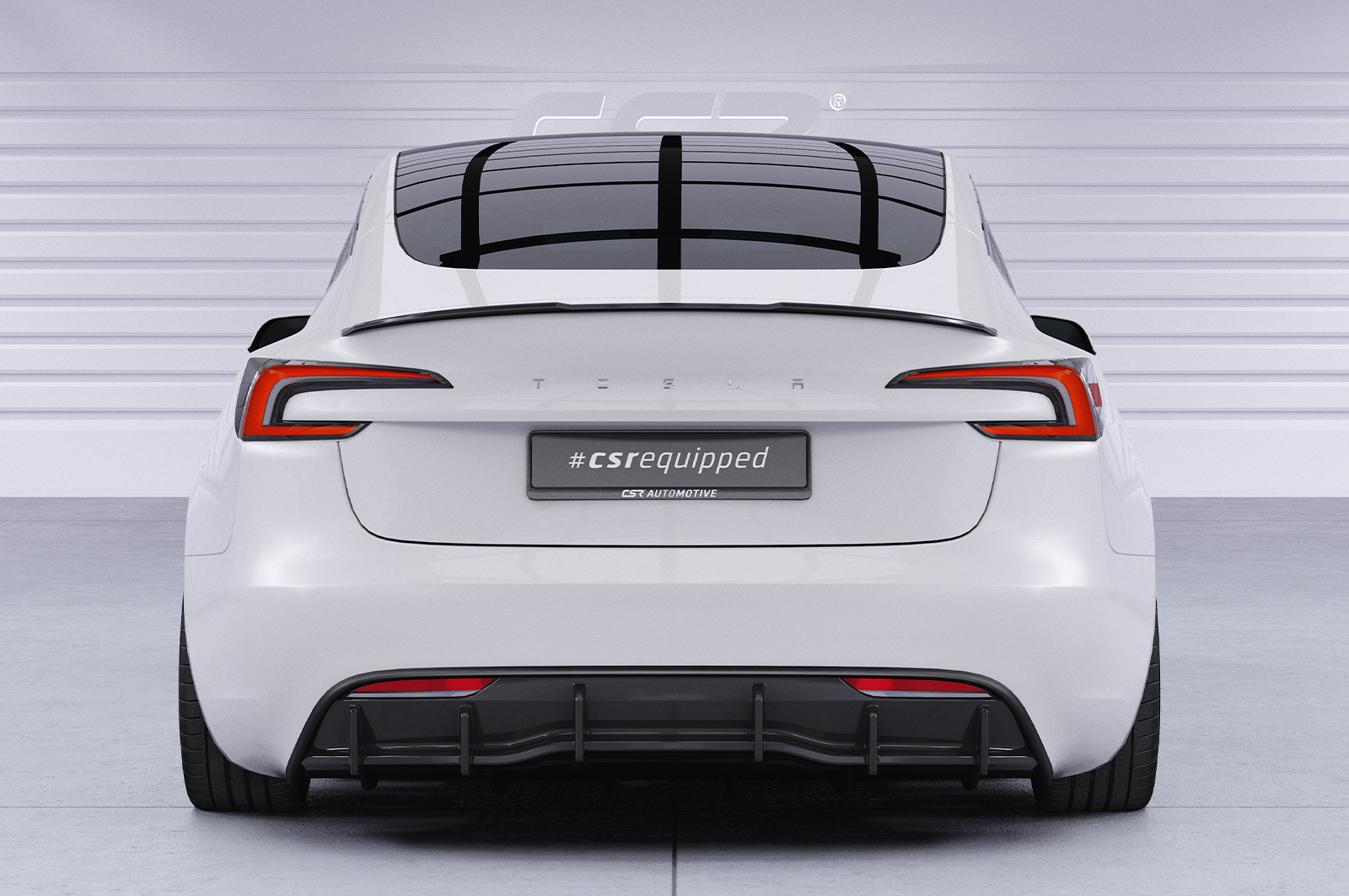 CSR-Automotive Diffusor | Heckansatz für Tesla Model 3 in Carbon Optik mit ABE/TTG- Heckansatz passend für Tesla Model 3 Baujahr (Facelift) 09/2023-