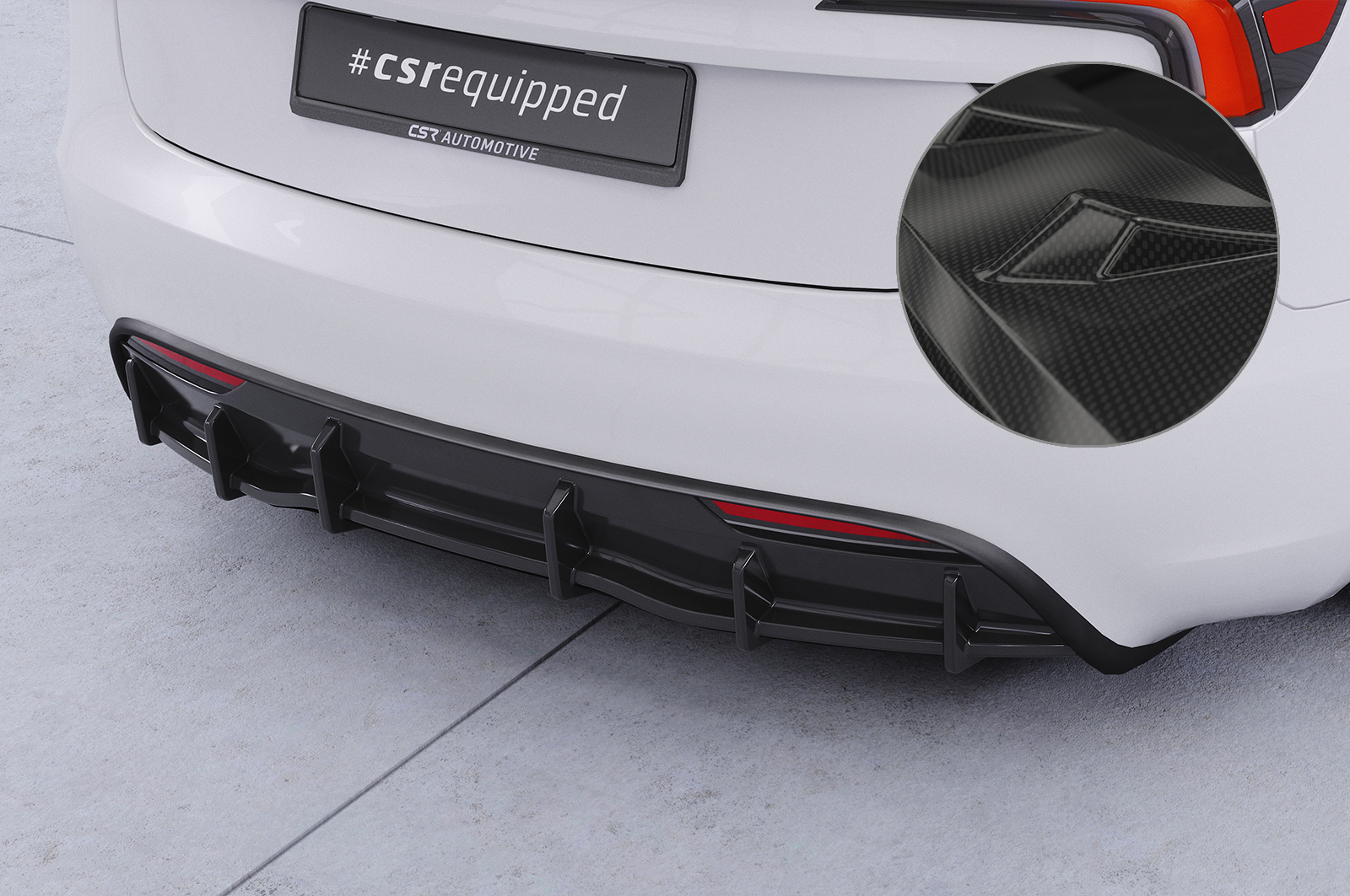 - Heckansatz ist aus hochwertigem Material ABS gefertigt und mit einer Oberfläche in Carbon Optik versehen (Achtung: Schutzfolie nach Montage abziehen)