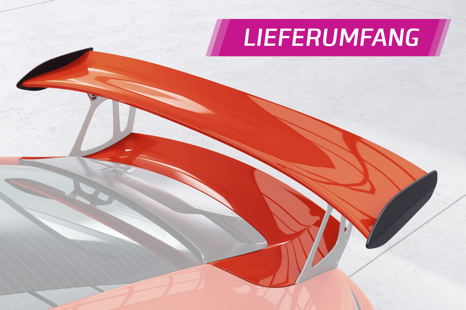 - Haltestreben und Motorraumschloss des GT3 RS sind nicht im Lieferumfang enthalten. Diese müssen original von Porsche beschafft werden.