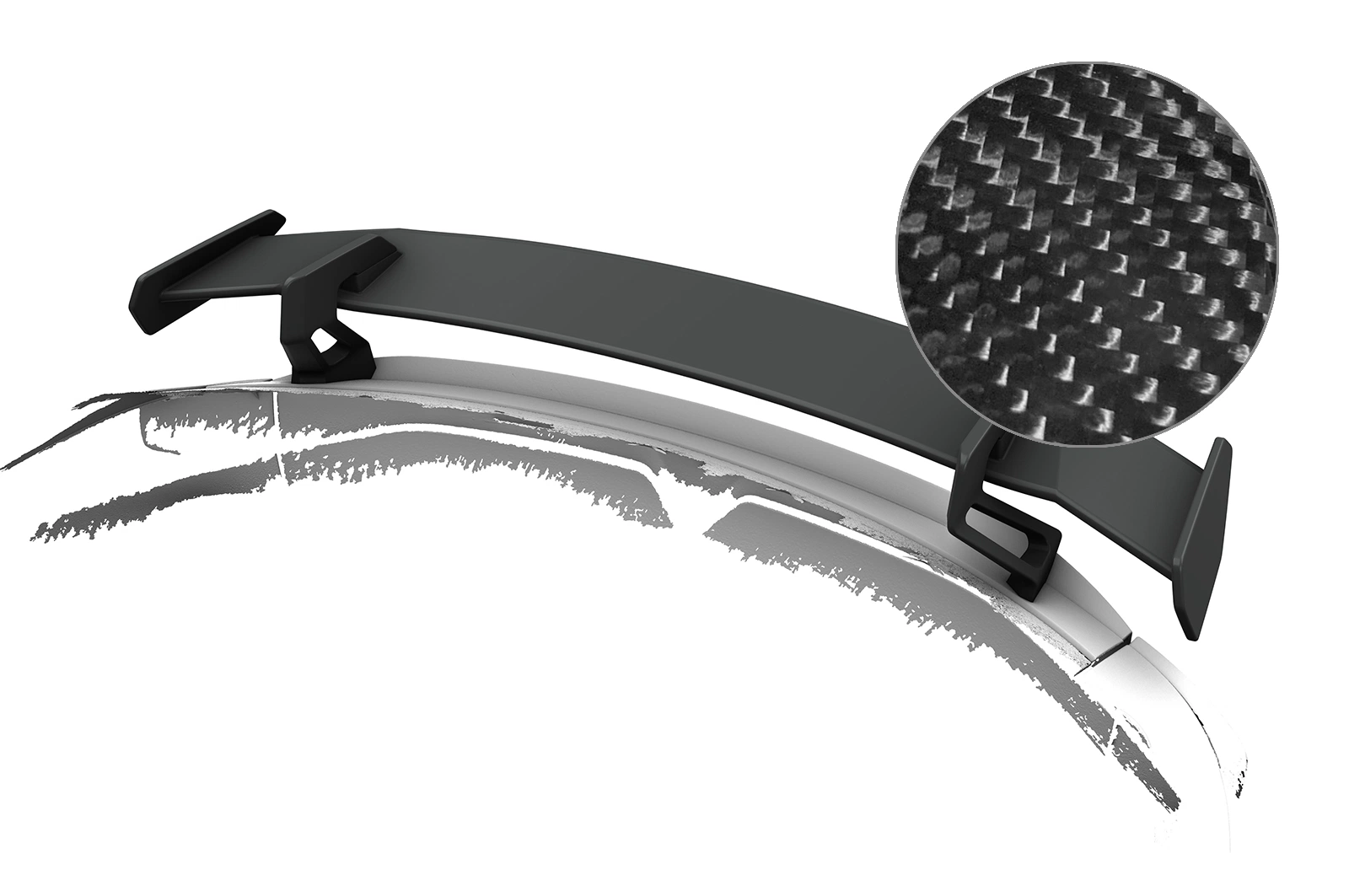 - Schwanenhals-Heckflügel mit schwarz Lackierten Haltern und Flügelbrett aus hochwertigem Sichtcarbon gefertigt