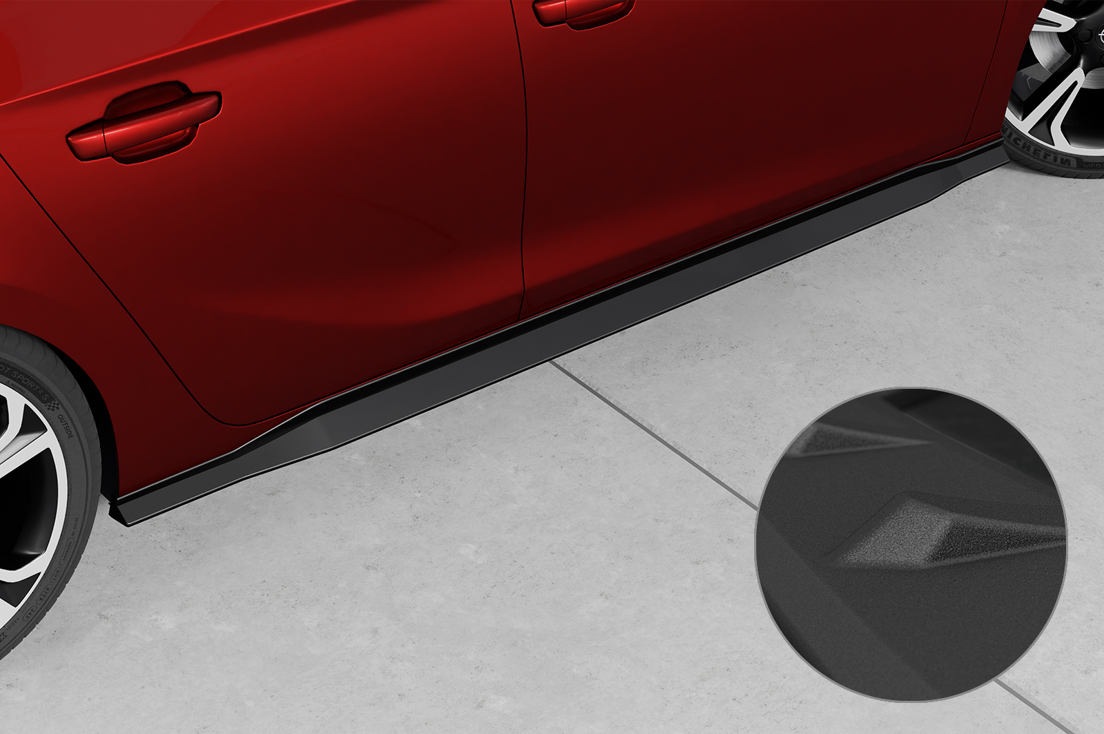 - Seitenschweller sind aus hochwertigem Material ABS gefertigt und mit einer strukturierten (gerillten) Oberfläche versehen, dadurch ist die Spoilerlippe sehr unanfällig gegenüber Kratzern