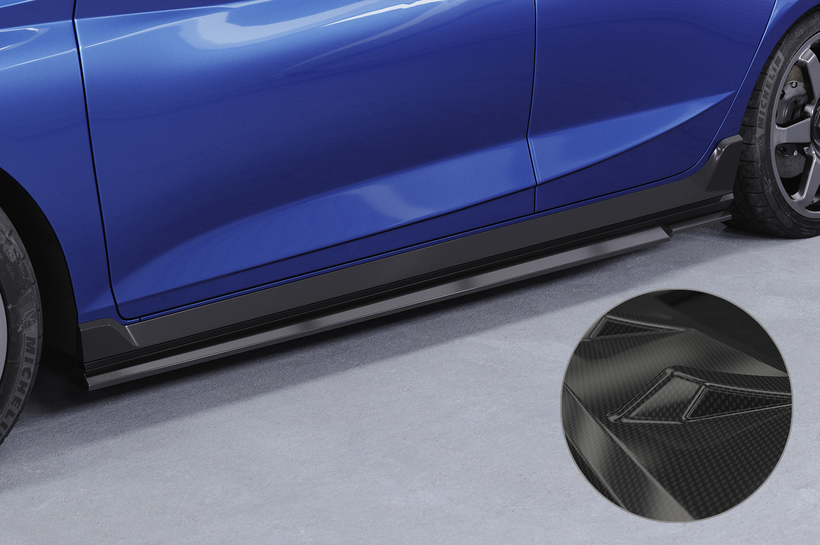 - Seitenschweller sind aus hochwertigem Material ABS gefertigt und mit einer Oberfläche in Carbon Optik versehen (Achtung: Schutzfolie nach Montage abziehen)