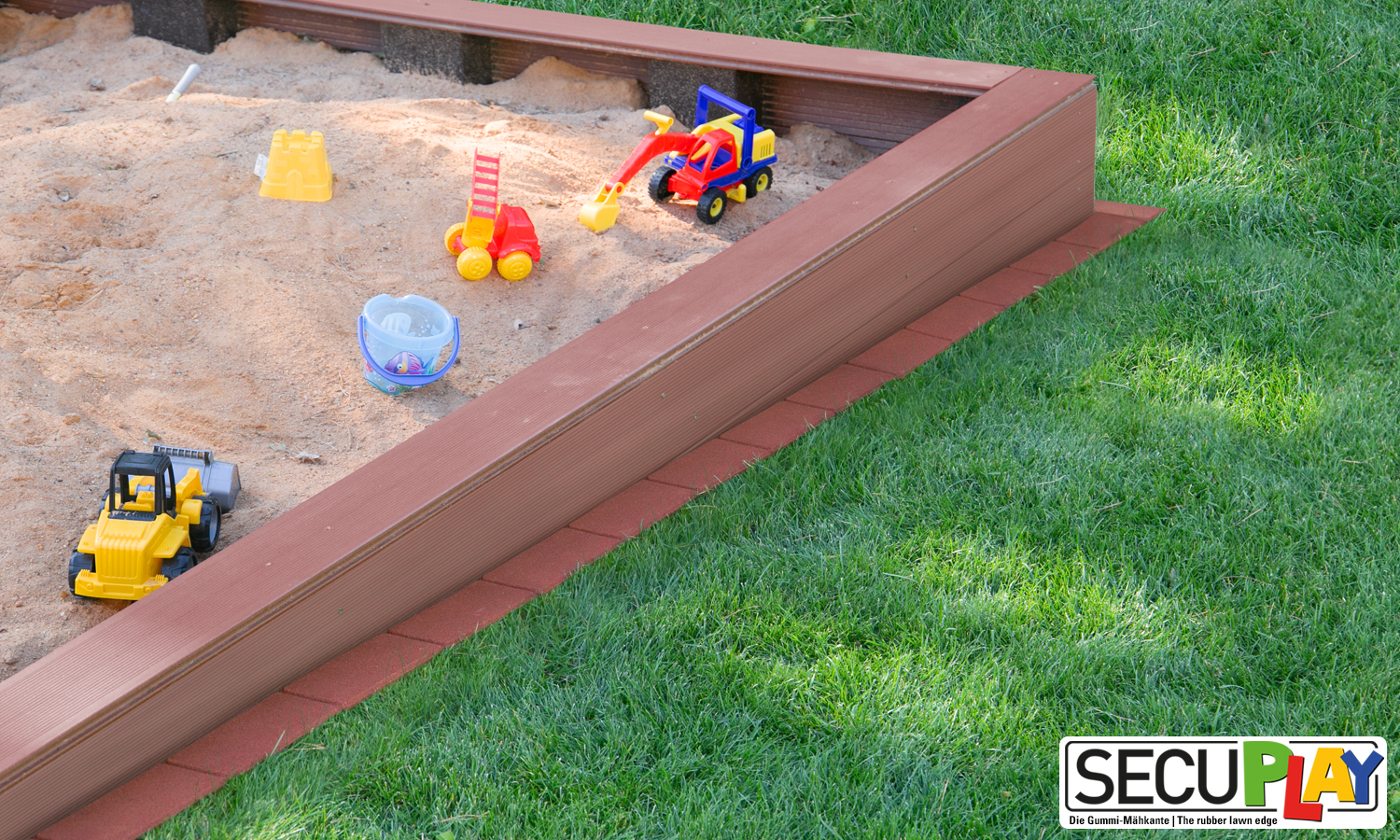 Entwickelt wurde die SECUPLAY Gummi-Mähkante als Lösung einer bekannten Problematik. Grenzt beispielsweise ein Hochbeet, Spielturm, Sandkasten, Gartenhaus, Zaun oder eine Holz-/WPC-Terrasse ohne Mähkante an den Rasen, schneiden meist weder Rasenmäher, noch Mähroboter randlos bis zum Objekt. Der Rasentrimmer erscheint zwar hier als einfache Lösung, wer aber den Randbereich trimmt, beschädigt schnell das angrenzende Material oder dessen Oberfläche. Als Alternative zur SECUPLAY Gummi-Mähkante kämen herkömmliche Mähkanten aus Betonsteinen in Frage. Jedoch müssen diese meist in Beton gesetzt und verfugt werden. Im Gegensatz zum Betonstein speichert die SECUPLAY Gummi-Mähkante kein Wasser und bietet deshalb eine Verwitterungsvorbeugung angrenzender Objekte. Im Vergleich zum Trimmen erspart man sich nicht nur das Risiko der Beschädigung des angrenzenden Objekts, sondern auch den Arbeitsschritt an sich.