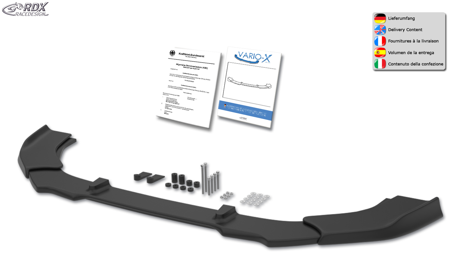 RDX Frontspoilerlippe VARIO-X für DACIA Dokker (SD) & Lodgy (SD) "V2" Frontlippe Front Ansatz Vorne Spoilerlippe