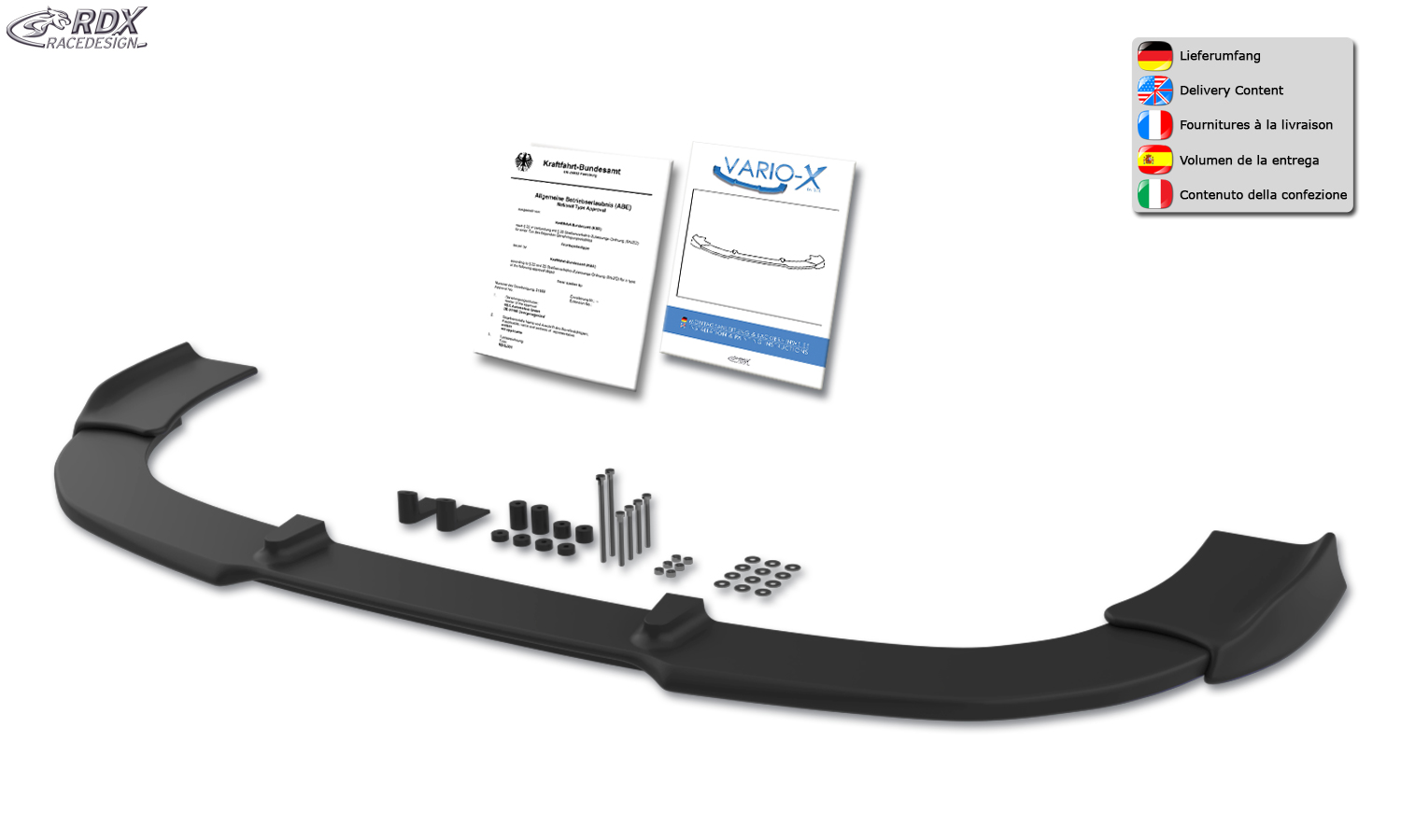 RDX Frontspoilerlippe VARIO-X für CITROEN Berlingo (7 / 2015+) & für PEUGEOT Partner (7 / 2015+) Frontlippe Front Ansatz Vorne Spoilerlippe