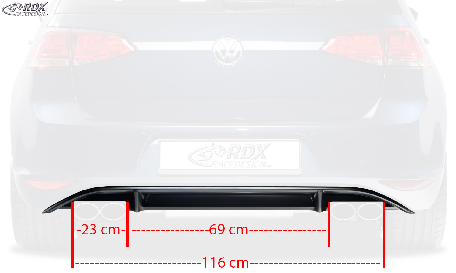 > Mit Endrohraussparungen gem. Abbildung/Maßbild.