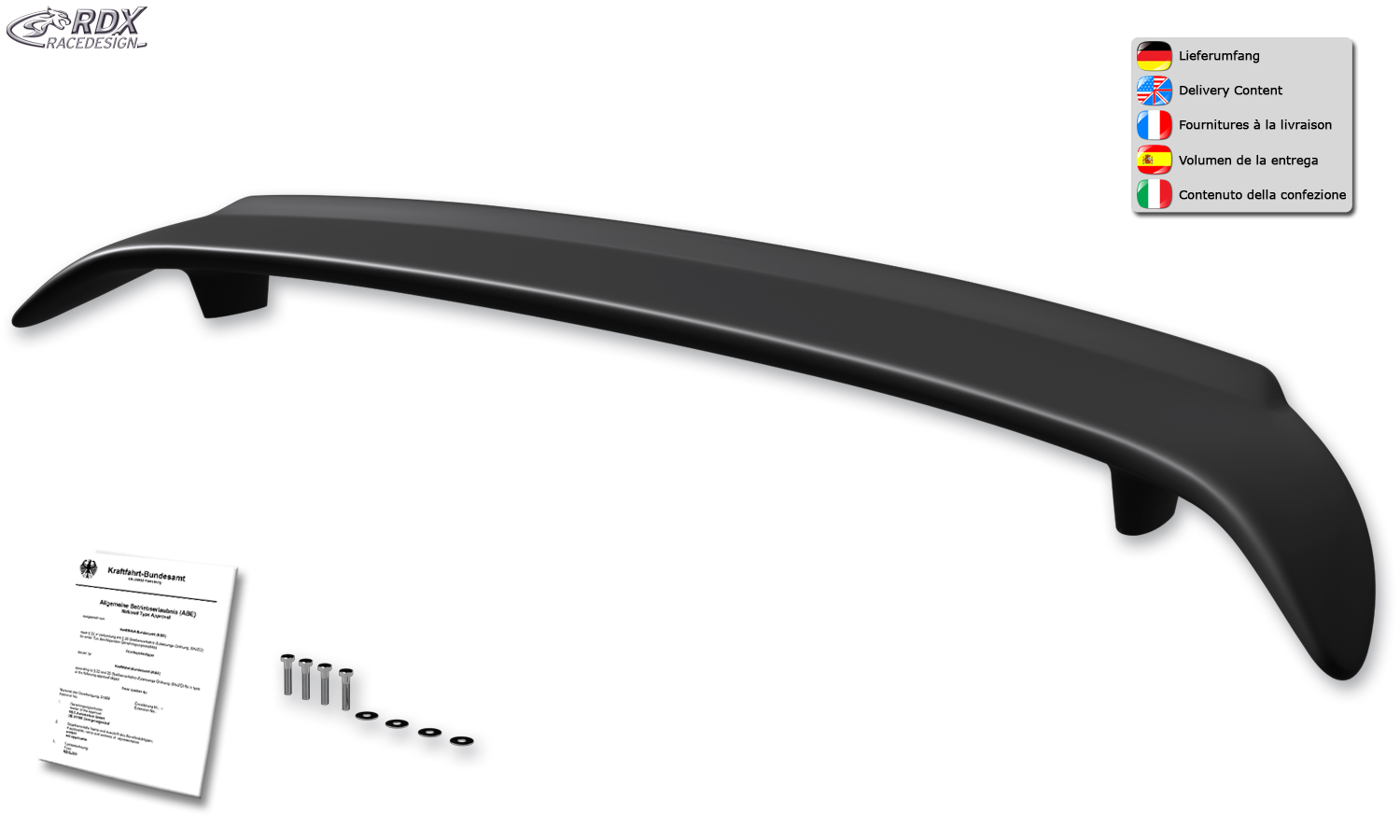 > Montage einfach durch Verschrauben auf der Heckklappe mit beiliegendem Montagezubehör