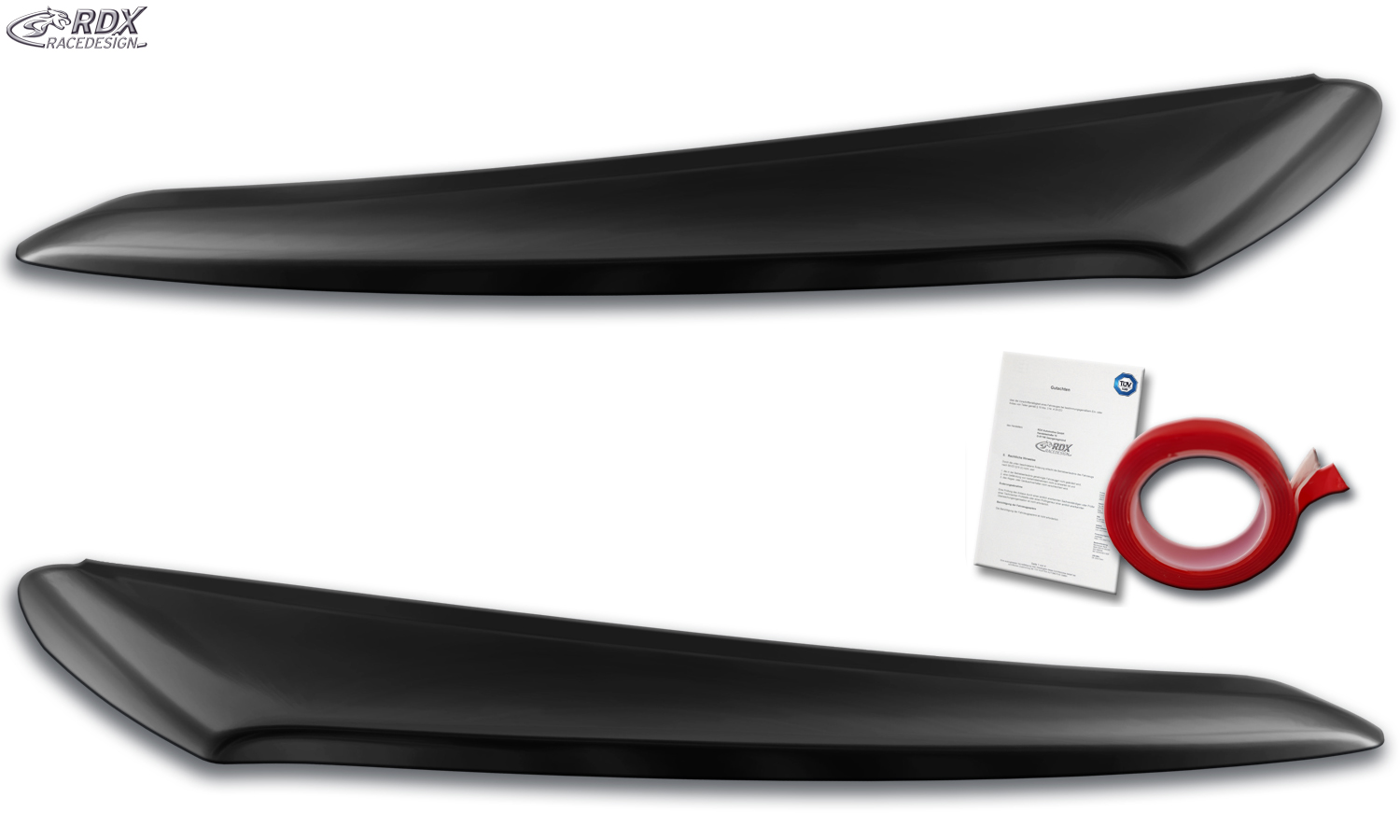 > Die Scheinwerferblenden werden einfach mit dem beiliegenden Montageklebeband auf das Scheinwerferglas geklebt.