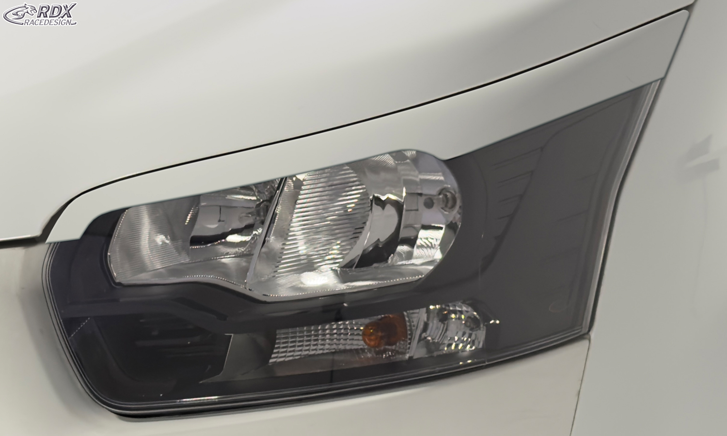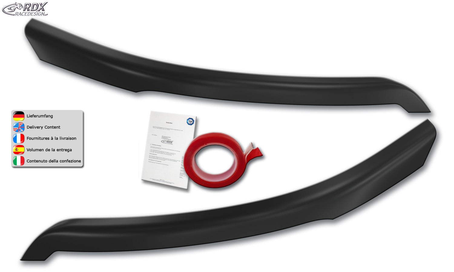 > Die Scheinwerferblenden werden einfach mit dem beiliegenden Montageklebeband auf das Scheinwerferglas geklebt.